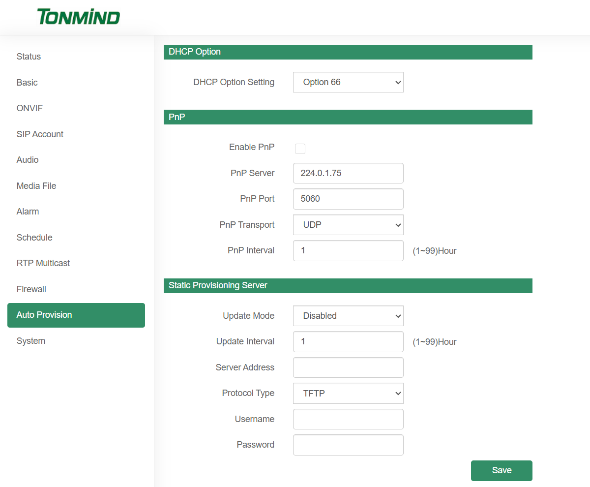 Une page dédiée aux paramètres de provisionnement automatique a été ajoutée, permettant aux utilisateurs de configurer le provisionnement automatique du haut-parleur IP. Cela simplifie les déploiements à grande échelle et garantit la cohérence des paramètres sur plusieurs appareils.