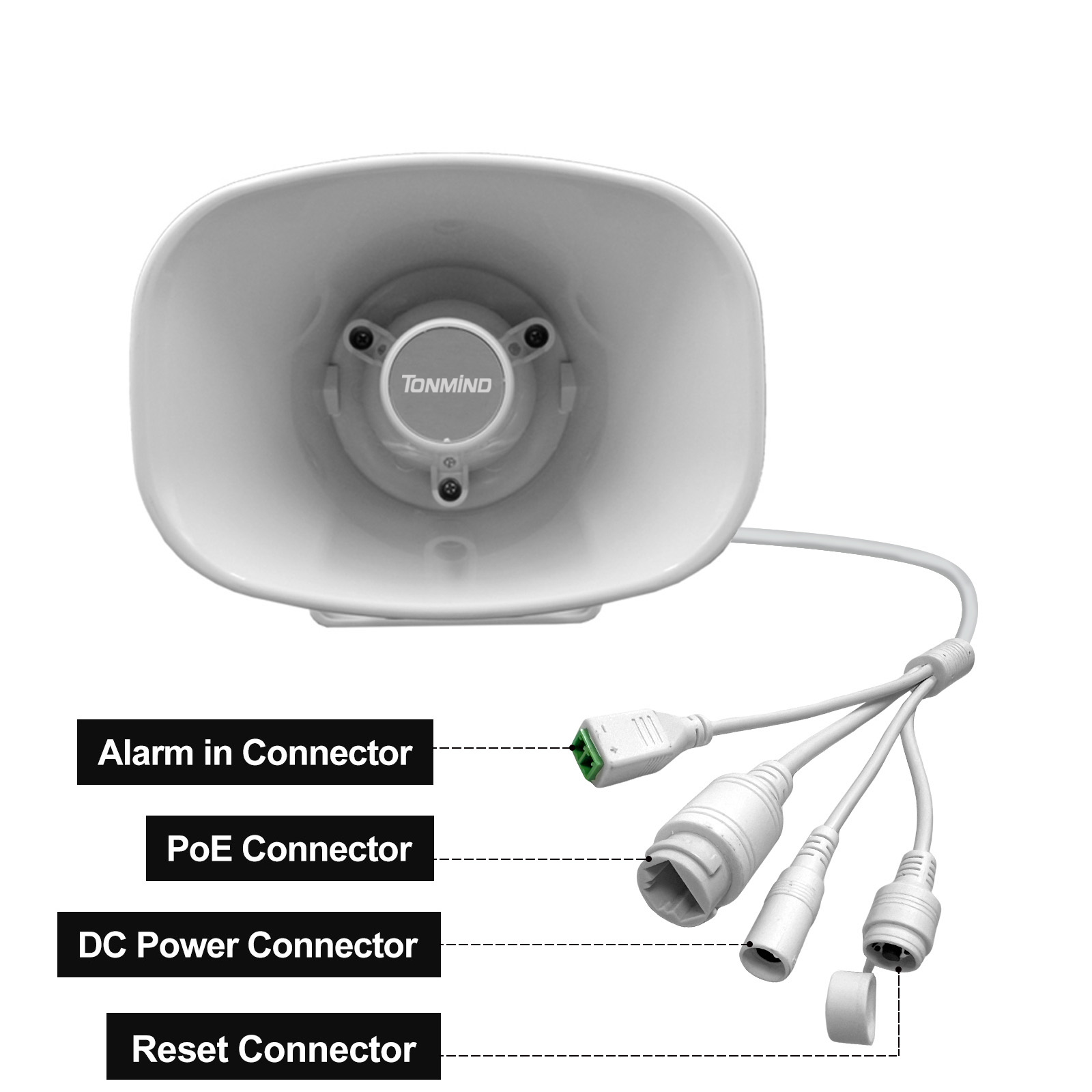 L'enceinte IP Tonmind est désormais équipée d'un câble de réinitialisation dédié, permettant aux utilisateurs de réinitialiser facilement l'appareil directement depuis le matériel. Cela offre un moyen rapide et pratique de restaurer les paramètres par défaut de l'appareil en cas de besoin.