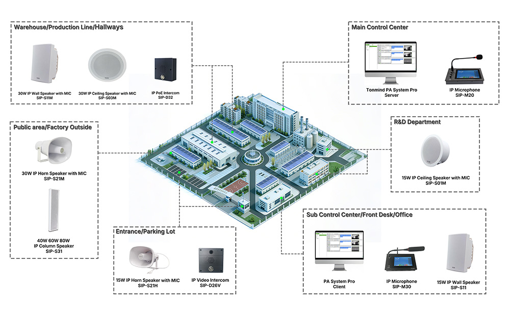 TONMIND’s IP Speaker and PA System solutions bring intelligence, safety, and efficiency to modern industrial environments. By combining SIP-based, ONVIF-enabled security integration, and centralized network management, TONMIND transforms traditional factory audio into a scalable, future-ready platform.
