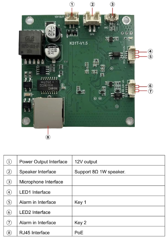 La carte PCB SIP Tonmind K31T est un module audio SIP compact et puissant conçu pour les applications d'interphone IP et de portier téléphonique. Il prend en charge les protocoles standard SIP et ONVIF, permettant une intégration transparente avec les systèmes VoIP et les plateformes VMS compatibles ONVIF pour une communication bidirectionnelle fiable. Alimenté par PoE, le K31T simplifie l'installation tout en offrant un son de haute qualité avec prise en charge des codecs OPUS 48 kHz, G.722 et G.711. La carte comporte des interfaces MIC et haut-parleur, des entrées GPIO d'alarme, des indicateurs LED et un contrôle HTTP, permettant un contrôle système flexible, des messages préenregistrés et une lecture audio programmée. Grâce à sa large plage de températures de fonctionnement et à sa conception de circuit imprimé compacte, le K31T est une solution idéale pour la fabrication de produits professionnels d'interphonie et de portier IP PoE.